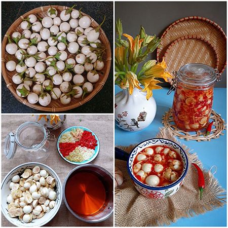 – Cà vớt ra khỏi nước ngâm, rửa sạch mấy lần với nước, rồi tráng qua chút giấm giúp cà để được lâu.